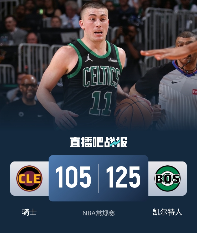 绿军终结骑士3连胜 布朗30+5 豪泽7记三分 米切尔下半场0分