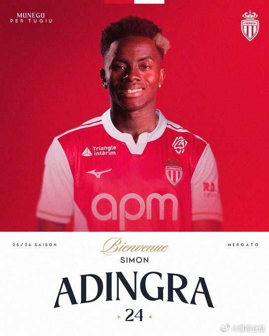 【官方】摩纳哥租借签下24岁的桑德兰边锋阿丁格拉(Simon Adingra),据悉有17M欧元的买断条款,这名科特迪瓦国脚半年前从布莱顿接近25M欧元转会黑猫,踢了15场比赛,打入1球。